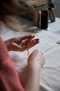 Participants will learn the traditional technique of hand-knotting pearls to create a classic, durable necklace. The workshop begins with a brief introduction to pearls—their origins, material qualities, and long relationship with jewelry—along with a look at the enduring history of the pearl necklace across cultures and centuries. From there, participants are guided through the technical foundations, including how to select pearls or beads, choose appropriate thread, tools, and clasps, and consider factors such as proportion, weight, and durability. After a step-by-step demonstration of the knotting process, participants will begin creating their own necklace.